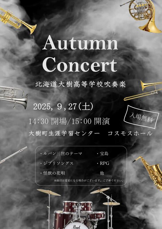 北海道大樹高等学校吹奏楽部AutumnConcert開催のお知らせ