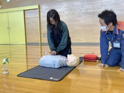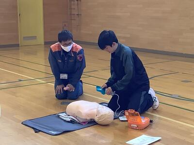本校生徒は毎年1年生で救命講習を受講するので、現在、全校生徒が心肺蘇生法とAEDの使用ができます!