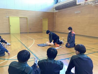 10月22日、大樹消防署より3名の方に来ていただき、普通救命講習を実施しました。突然の病気やケガで心停止している人をただ見ているのではなく、救急車が来るまでの間、命をつなぎとめるために心肺蘇生法やAEDが重要であることを学びました。