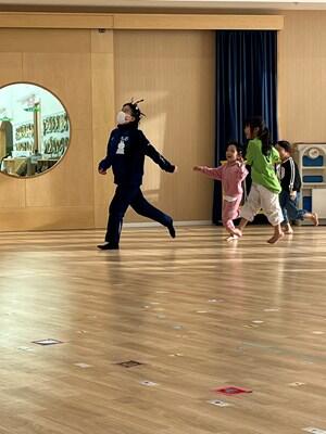 最後のお題を「トナカイ」に設定することにより、今回の交流ゲームのテーマは「クリスマス」であることを伝えました。大喜びの園児のみなさん。