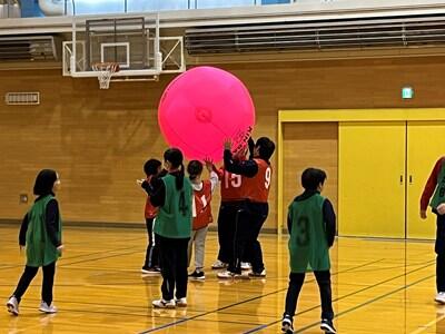 最初は、「オムニキン、みどり!」「オムニキン、ピンク!」と大きな声で叫ぶことをためらっていましたが、慣れてくるとゲームに夢中になり、みんな大きな声を発し、巨大ボールを追いかけて全力疾走していました。