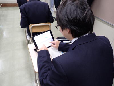 また、総会資料はデータ配信され、生徒は各自のタブレットを使って議事内容を確認しました。