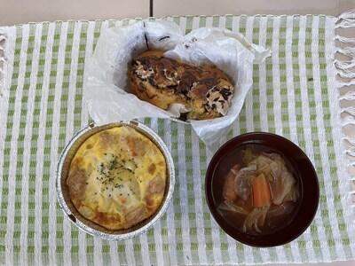 こちらは洋風メニュー。キッシュ、ポトフともに具だくさんで美味しそうでした。カトルカールとは、いわゆるバターケーキのことですが、生地にチョコとマシュマロを加えるところが若者らしい一品でした。