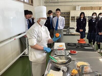 3年生選択科目「フードデザイン」において、卒業生をお招きし、講話と体験実習を行いました。