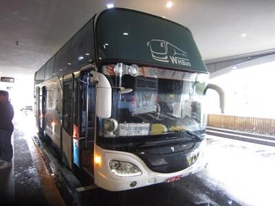 日本のバスとは造りが違い、一階部分に荷物を積むスペース、二階部分に乗客スペースがあります。