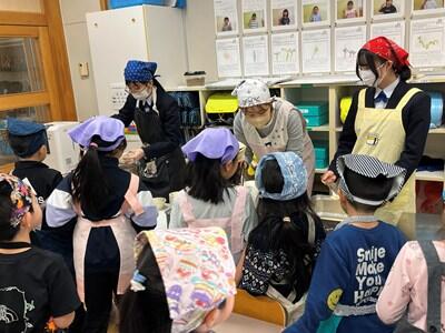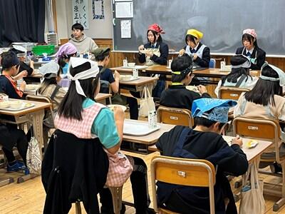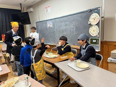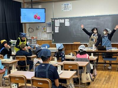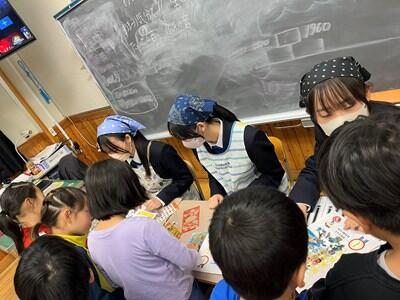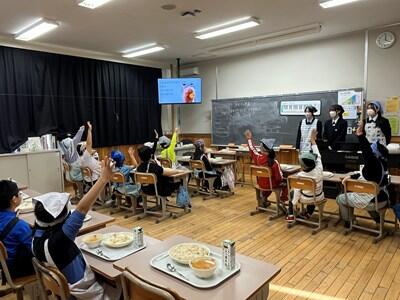 当日は、小学校の1年生から6年生までの全クラスに高校生が入り、メニューの説明と見学旅行で学んだ台湾の食文化について紹介しました。