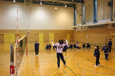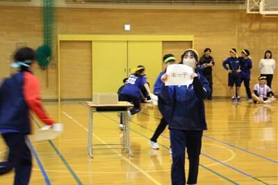 午前は学年対抗でミニバレー、バドミントン、バレーボール、ボッチャ、モルックの5種目を実施しました。