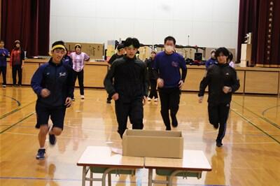 午後は、全校生徒に教職員も含めて4チームに分け、サイコロダッシュ、プチョヘンザ、借り人競争、障害物を越えろ(障害物リレー)を行いました。